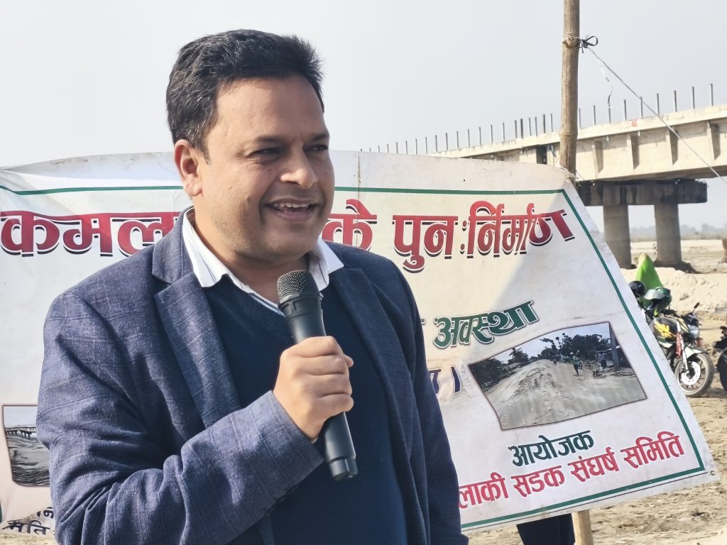 उनका अनुसार करिब १४ वर्षअघि निर्माण सुरु भए पनि पटक–पटक म्याद थप्दै काम अलपत्र परिरहेको छ । विसं २०७८ असार १७ गते आएको बाढीले पुलका दुईवटा पिलर भासिएपछि समस्या झन् जटिल बनेको छ । पुल नबन्दा मधेशका लाखौँ नागरिकको आवतजावत, स्वास्थ्य सेवा, शिक्षा र आर्थिक गतिविधिमा गम्भीर असर परेको उनको भनाइ छ ।